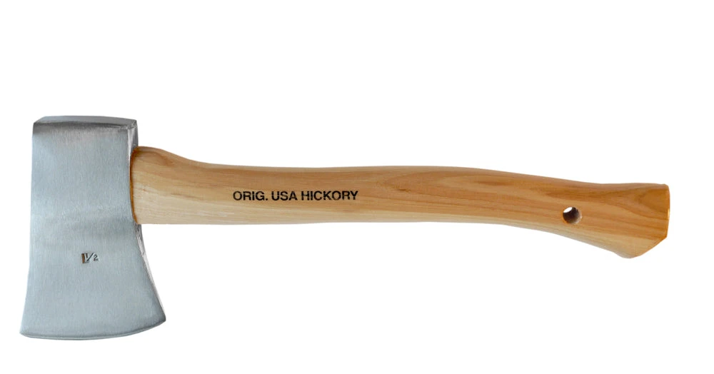 The Hatchet head is made of high-class carbon steel, full and fine polished, using a special grinding technique. Handle made of original USA hickory, ground twice, with bored hole, and lacquered with environmentally friendly water-based paint and grip.