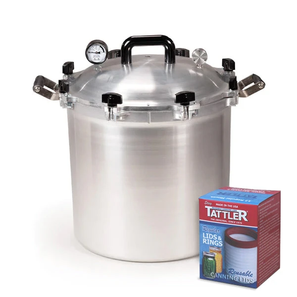 The All American 941 Pressure Canner offers a safe and effective method of canning and cooking in bulk. This 41-quart canner and cooker allow you to prepare even more fish, meats, fruits, and vegetables with each use. Using the All American 941 is the best way to can your meats and produce while adhering to U.S.D.A. standards. Additionally, the sizable interior makes it the perfect tool for beginners and pressure-cooking-veterans alike. This dual-use canner and cooker is also equipped with a “Metal-to-Metal” sealing system and positive action clamping locks to make this product safe and easy to use. The All American 941 (41 quarts) Pressure Canner includes two cooking/canning racks and an instructional guide that includes tips and recipes.