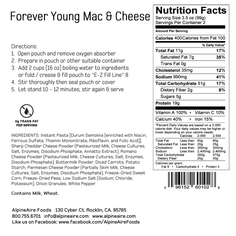 Classic Mac & Cheese made with a three-cheese white sauce and healthy vegetable additions of peas, carrots, and corn.