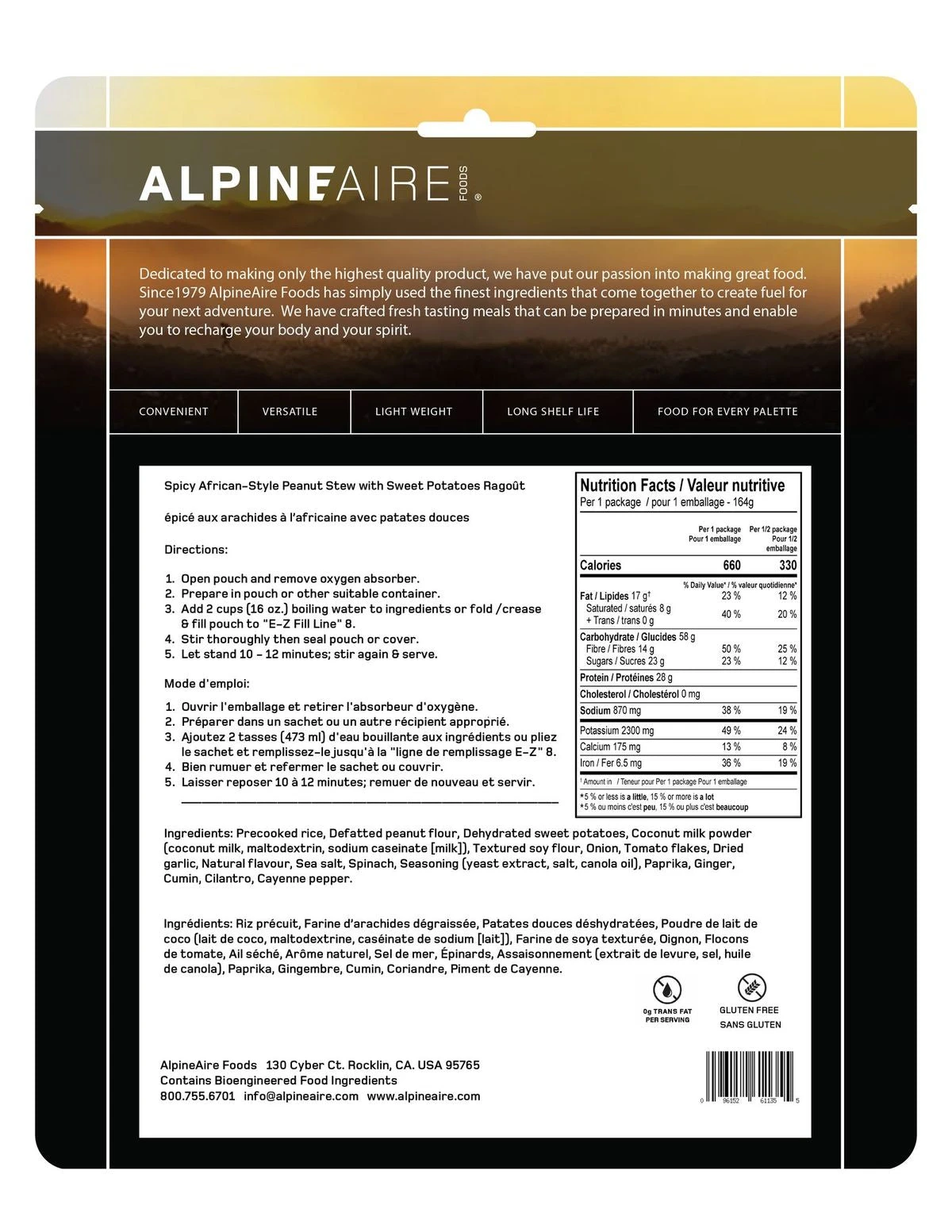 Calories per package: 660