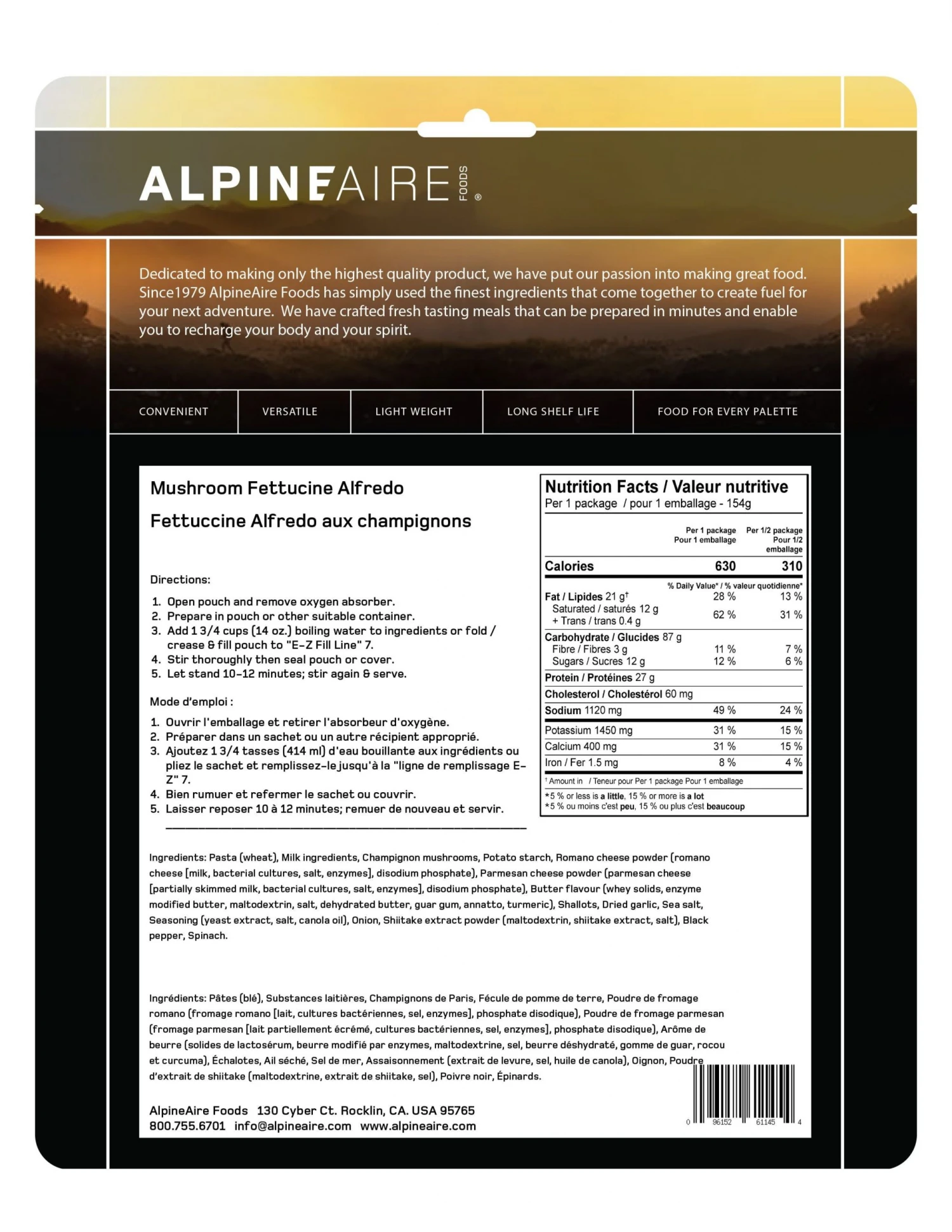 Calories per package: 630