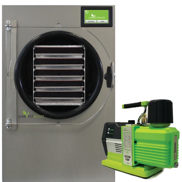 Oil free vacuum pump can be used with any size Harvest Right freeze dryer. They are quiet, fast, and easy to use. The Harvest Right Oil Free Vacuum Pumps do not require oil changes, and come with the necessary parts to connect to your current freeze dryer.