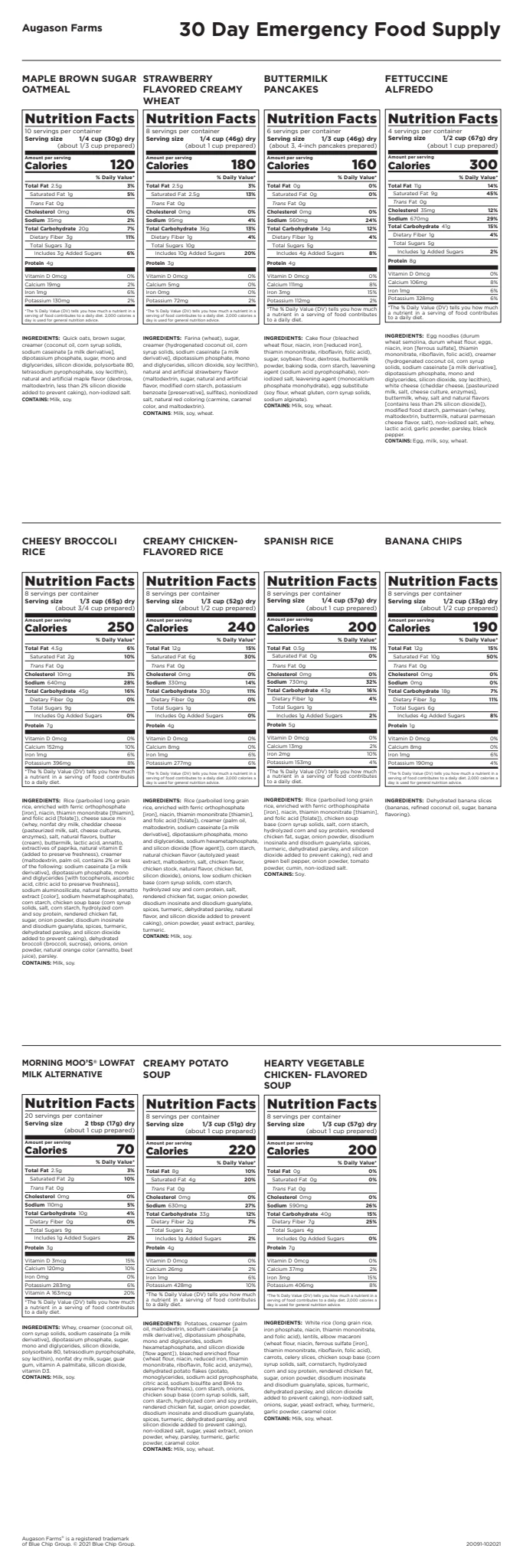 The kit includes 11 varieties of foods to choose from and a total of 36,600 calories. This equates to 1,220 calories per day which aligns with national health organizations’ average recommended daily calorie intake of 1,200. So, you’re covered with nutritious calories (not the empty calories you’ll find with other emergency food brands), flavorful meals and plenty of variety—all packaged in 1 convenient stackable 5-gallon pail.
