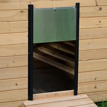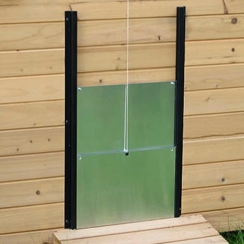 This space-saving 2-stage sliding coop door is suitable for nearly all coops and easy to fit with the 6 screws provided.