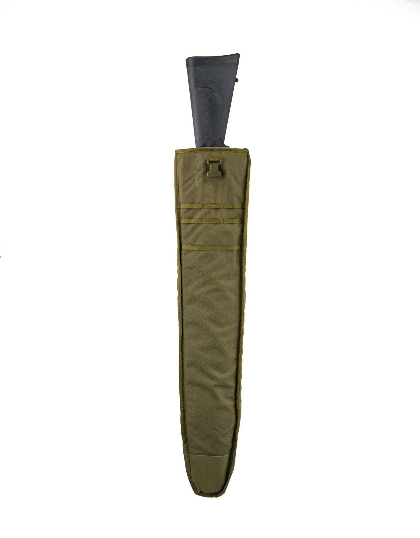The A2LS is a larger four-panel side scabbard, similar in length to the A2SS 3-panel scabbard. The A2LS Bolt Sniper Rifle scabbard is recommended for conventional bolt-action rifles with 50mm objective scopes and/or bipods (but note, depending on the configuration it is not likely to work with deep-bellied rifles such as the Accuracy International chassis, or AR-type weapons). The A2LS features a self-mounting strap and hook system which allows it to be attached to most Padlock/MOLLE/PALS panels. It works best with packs that have compression straps, or for internal mounting in our J79, J51, F52, or F4 packs. It’s also a great companion with our H1 Mini Me pack.  Pair it with our JSTC Butt Cover for a nice, snug drag bag/gun case.