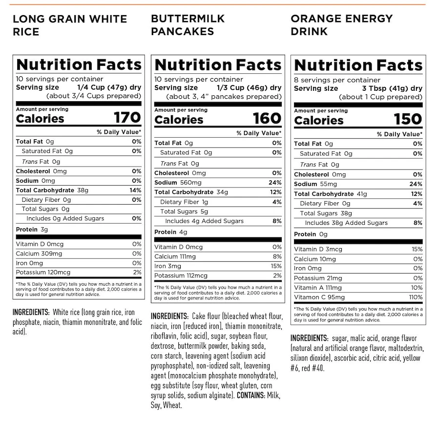 | Instant White Rice | 3 | 30 |