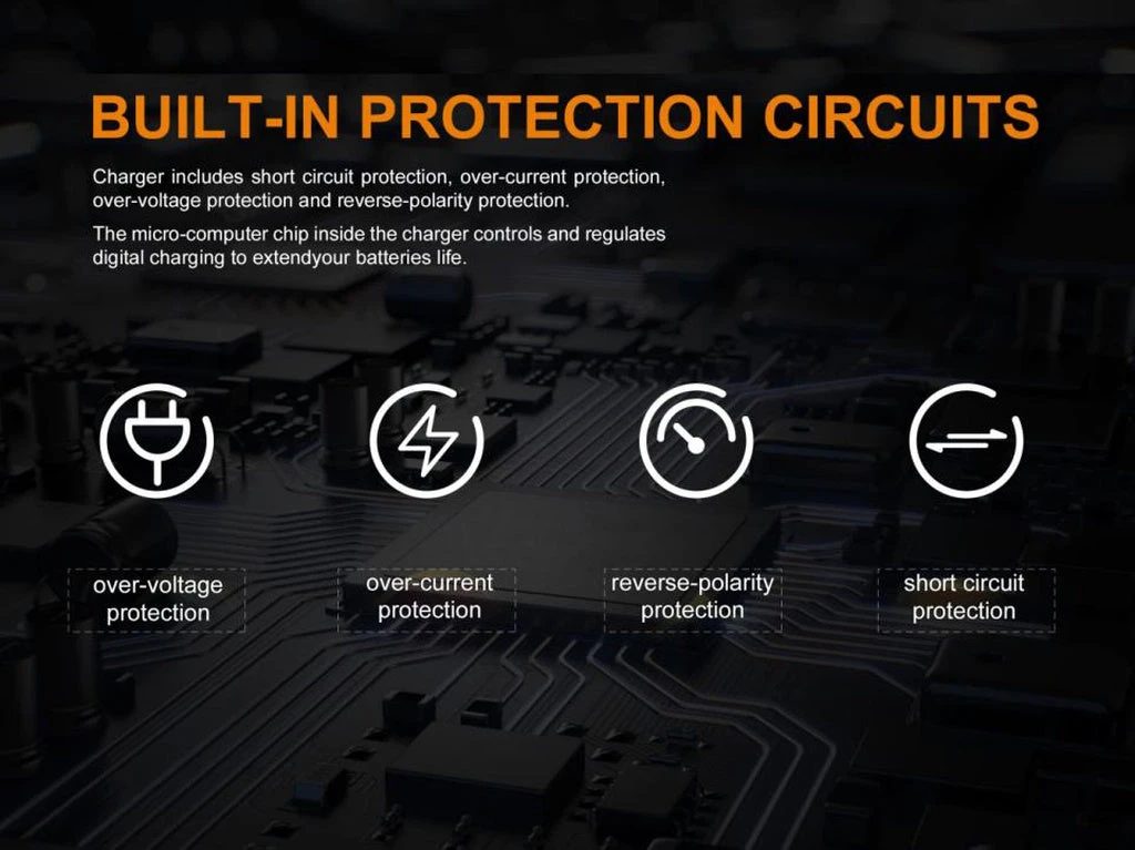 The Fenix ARE-D2 is a single channel smart charger that features Micro USB charging and USB discharging functionality. It is compatible with Li-ion and Ni-MH/Ni-Cd batteries. A high-definition LCD screen clearly displays the charging, discharging and battery status. The charger also includes multiple built-in protection circuits that guarantee charging and general usage are both simple-to-use and safe.