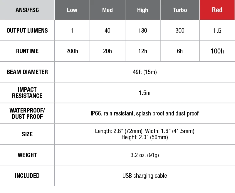 The Fenix CL20R rechargeable camping lantern emits a maximum 300 lumens from its built-in 1600mAh battery and neutral white LED. This lantern has six lighting modes, including 4 white light levels and red and red flashing. Charging and battery level indicators help you make sure you have the power you need. The magnetic bottom and hanging hook make it easy to light any situation. Rain resistant, splash proof and dust proof, the light weight and durable CL20R lantern is the perfect camping companion.