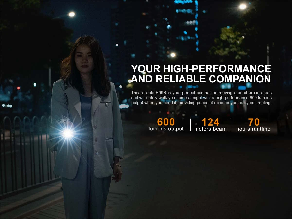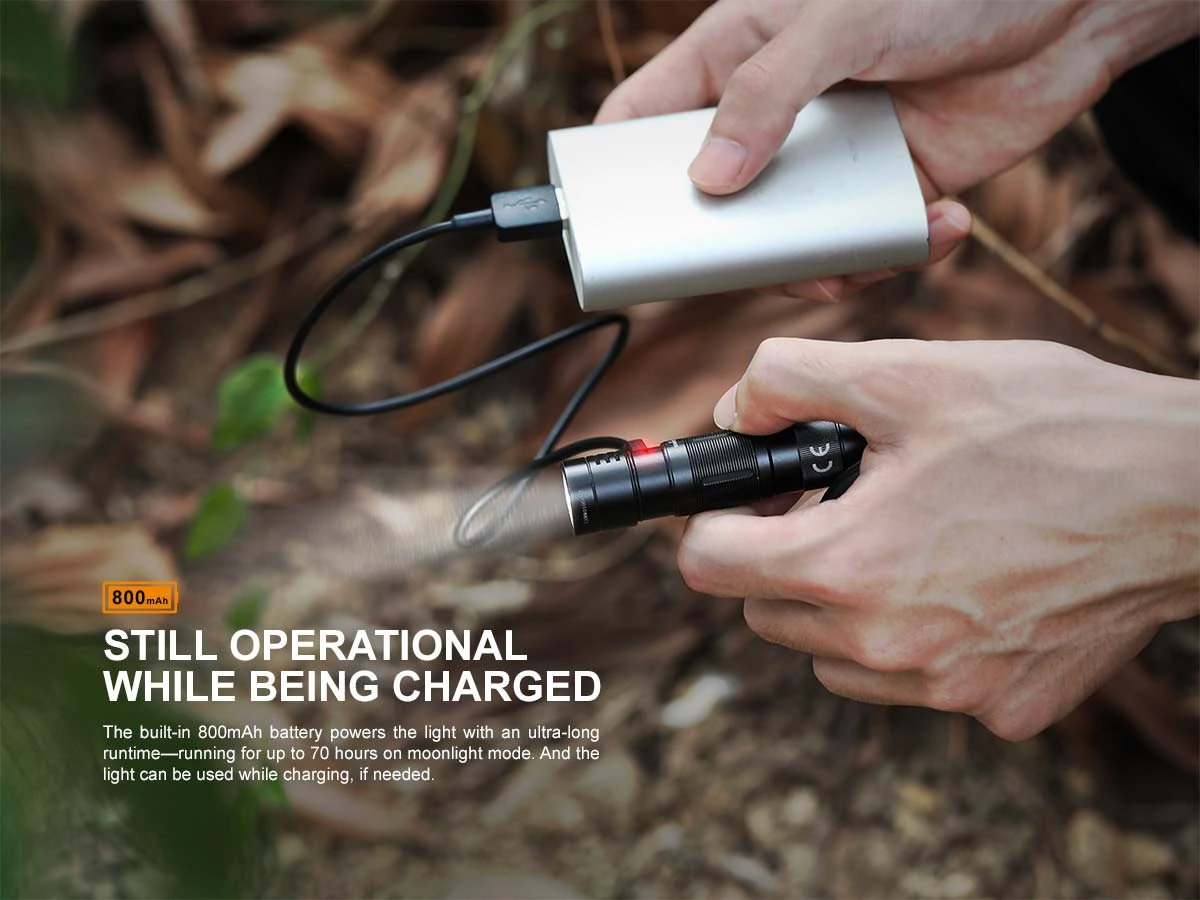 The Fenix E09R Rechargeable Flashlight is the perfect everyday carry companion. At only 3.1” long and less than 1” round, this small flashlight can easily light up your surroundings. The side switch lets you cycle through four brightness levels including a Moonlight mode for up-close tasks that can last up to 70 hours. And when even more light is needed choose the Burst mode for a short 600 lumen burst of light. The built-in battery is USB Type-C rechargeable and the port is creatively hidden beneath the head to maintain appearance and create a dustproof and waterproof seal. Perfect for your pocket or your keychain, the Fenix E09R offers maximum illumination in a small EDC size.