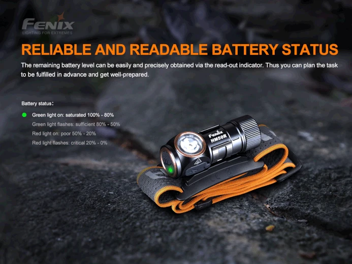 The Fenix HM50R V2.0 is a rechargeable multipurpose headlamp powered by one included Fenix ARB-L16 700P battery. This headlamp is power-packed, throwing a 700 lumen beam to a maximum distance of 115 meters. The HM50R V2.0 is outstanding with its solid and lightweight construction, plus it is detachable from the headband plate to be used as a mini flashlight. This rechargeable headlamp combines white and red lights, comes with a USB Type-C charging cable and features an IP68 rating, all of which make the Fenix HM50R V2.0 perfect for camping, hiking or working in rugged environments.