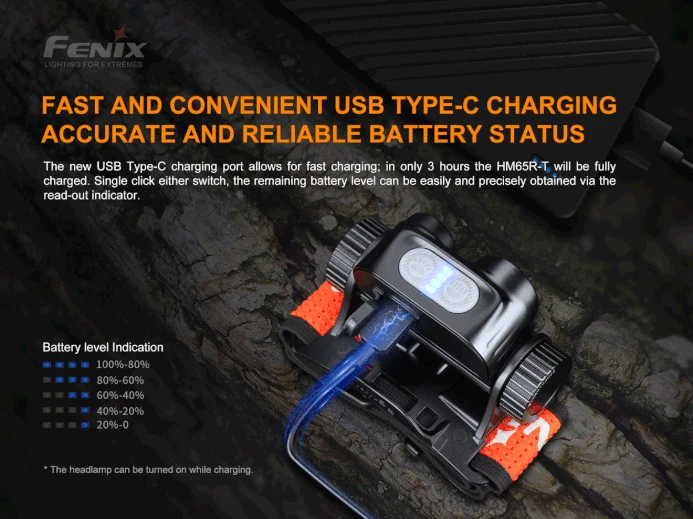 The Fenix HM65R-T rechargeable headlamp is designed for trail running. This new Fenix headlamp is constructed from ultra-lightweight magnesium material. With two LED’s, the HM65R-T can reach 1500 lumens by activating its dual spotlight and floodlight mode with the separately controlled top switches. The primary power option is a single 18650 battery; as a secondary option, you can also power the HM65R-T with two CR123A batteries. The HM65R-T also features a USB Type-C charging port to facilitate charging of the included 18650 battery it also has an IP68 rated protection and 2 meters of impact resistance. The included hollow headband provides comfort and adjustability for a perfect fit in every situation.