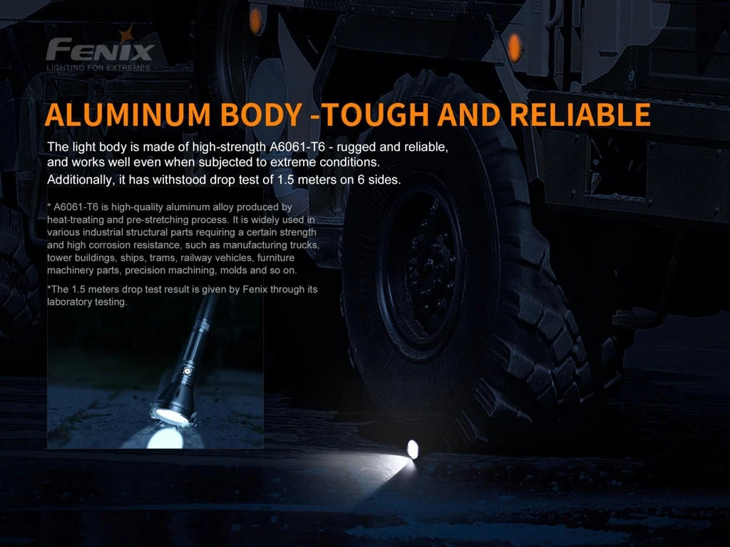 - Included a Fenix ARB-L21-5000U USB rechargeable 21700 Li-ion battery.