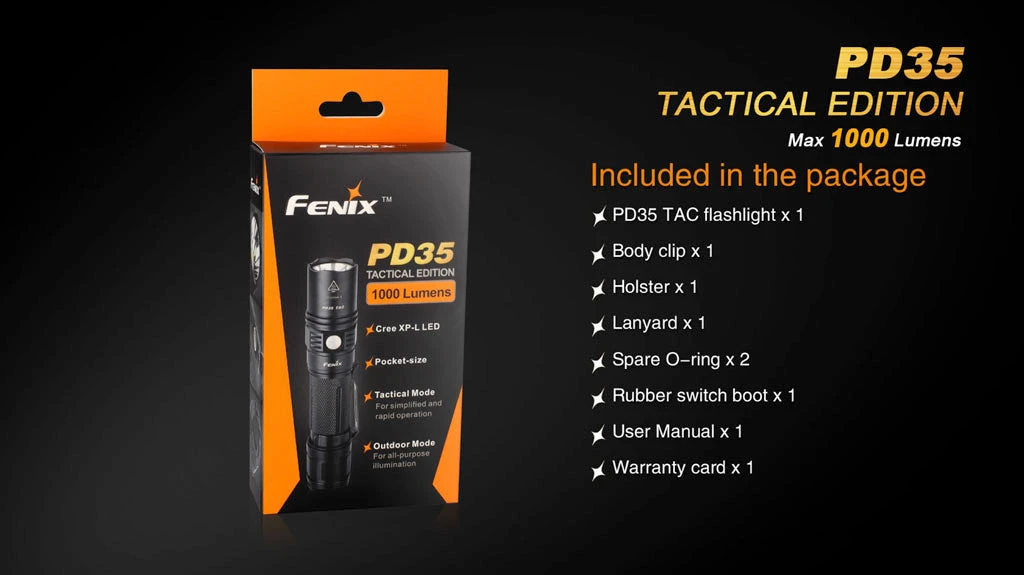The Fenix PD35TAC (Tactical Edition) LED Flashlight, remains in it’s pocket-size form but surpasses the traditional PD35 in performance and tactical employment.