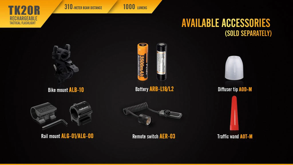 - 1 x Fenix TK20R flashlight