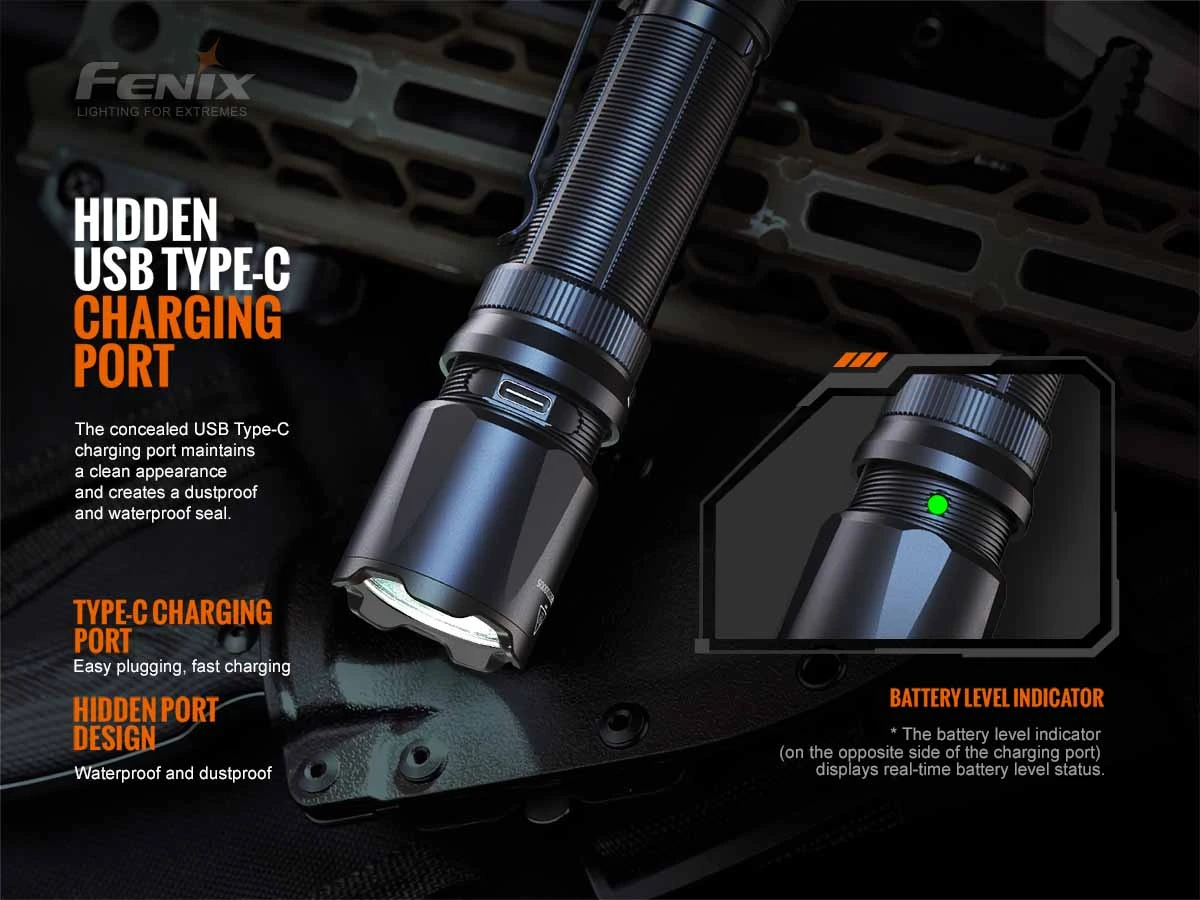 The Fenix TK20R V2.0 is a multipurpose tactical flashlight featuring incredible performance with a maximum 3000 lumen output and a beam distance of up to 475 meters. Quickly and easily operate the light to choose between six lighting modes by using the dual tactical tail switches. It’s durable and rugged with IP68 dustproof and waterproof ratings. The included high-capacity 5000 mAh Li-ion battery can be conveniently charged through the USB Type-C port on the flashlight, making the Fenix TK20R V2.0 flashlight your go-to tool for high-intensity and long-lasting tactical performance.