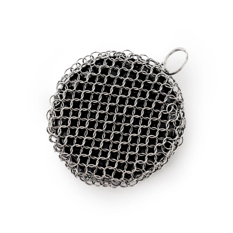 Cast Iron Scrubber is 304 stainless steel chainmail, with an easy-to-grip silicon center for restoring cast iron cooktops.