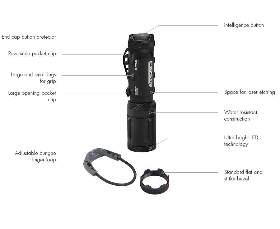 Run by First Tactical’s new Intelligence Button, the TriTac Light boasts three different modes allowing operators to thoughtfully flip through brightness settings for outdoor, indoor and map reading, letting them choose the mode they need for the task at hand.