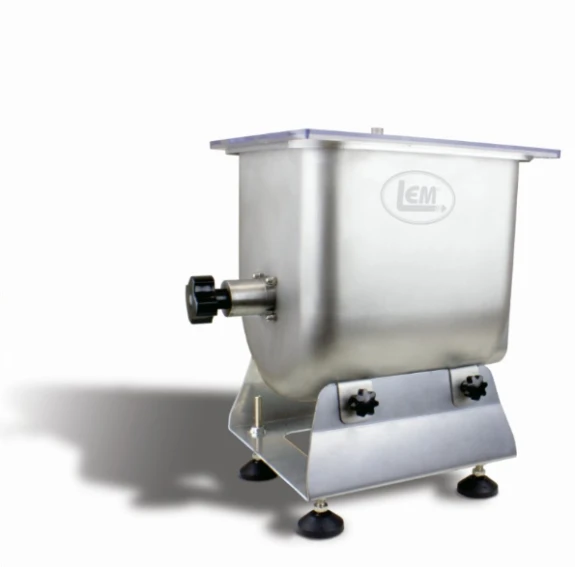 LEM’s mixer features a stainless steel hopper that’s easy to clean and is rust-resistant. The gearbox includes roller bearings to provide powerful torque for the paddles to thoroughly mix the meat. The meat tub detaches for easy cleaning. This fixed position Big Bite Stainless Steel Meat Mixer mixes large batches, small batches, or any size in between in just minutes. The 25 lb. mixer tub measures 10.75 in L by 10 in W by 12 in H. This 25 lb. mixer works with Big Bite Grinders with a #8 head or larger. Motor NOT included. Includes clear, acrylic PMMa cover.