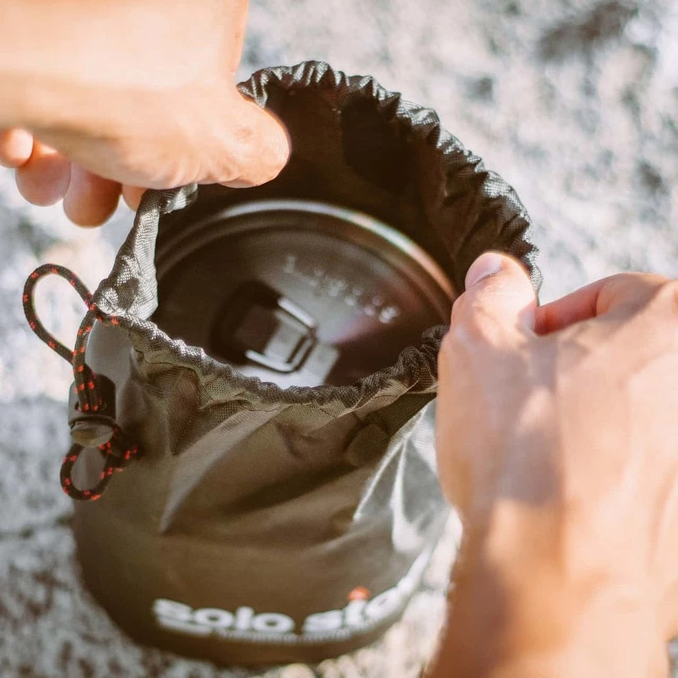 Solo Stove Lite nests inside this all stainless steel 900mL pot for compact storage.