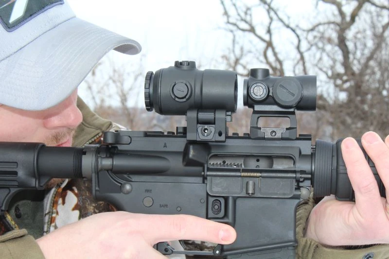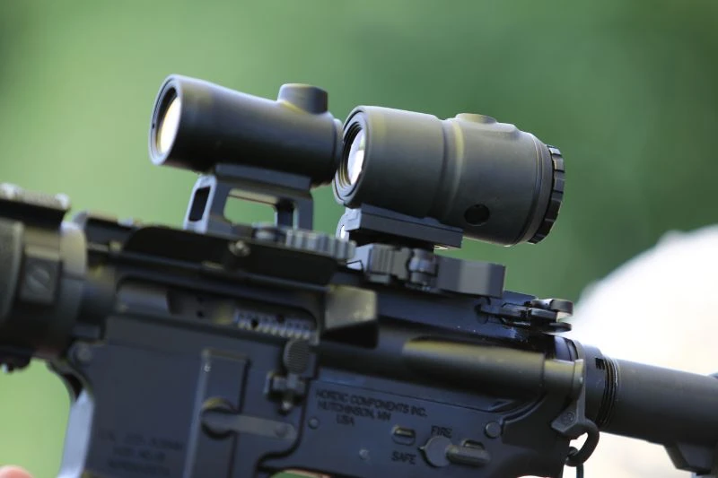 Using a magnifier with a red dot sight such as one of our x sites allows you to see a target much better. It adds magnification so you can view objects closer and clearer. The MG1 has the capability to fit on both weaver and picatinny style rails. Consequently, you can use the MG1 with any red dot sight. One of the best features of the MG1 is its flip-aside design. You can attach it to your gun, but if you don’t want to use it, you can just flip it to the side instead of completely taking it off. If you do wish to take it off, however, this product has a quick-release feature that makes it easy to attach or detach from your gun.