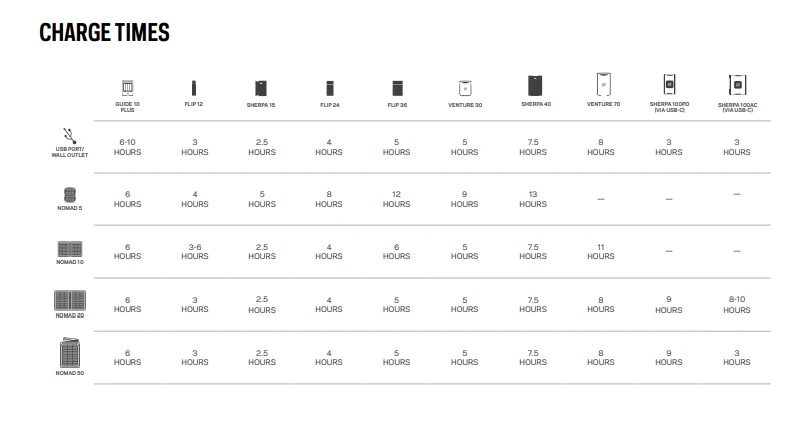 *Solar charge times vary and are dependent on many factors such as elevation, temperature, time of year, angle and position to the sun.