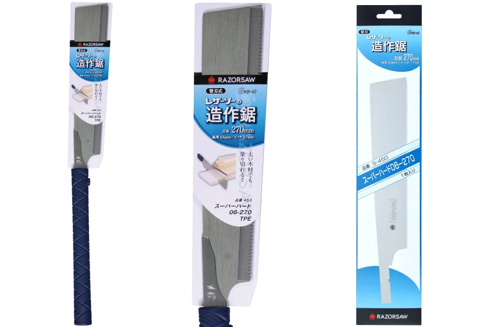 A TPE grip that uses elastomer resin for the entire grip and does not slip anywhere. They are 0.6mm thick wood working saw. Blades are thick and easy to handle. Used for cutting Laminated wood, General timber, Composite wood panel, MDF panel, Particle board (OSB), and Ply wood.