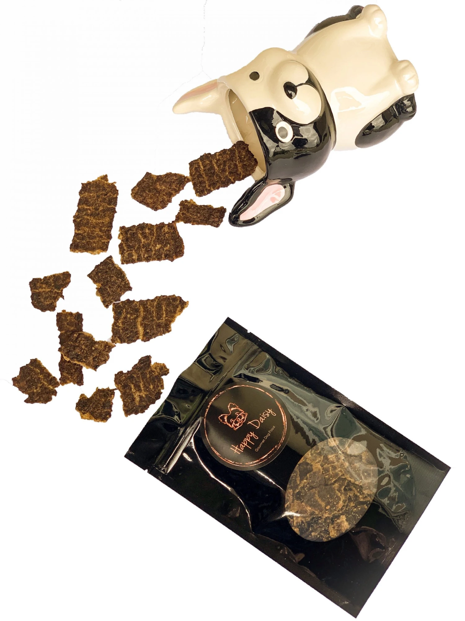 Our trail mix cookies are a good versatile product to have on hand and can be compared to healthy energy bars. Need a treat? A snack? Or a quick meal on the go? We’ve got you covered with our delicious trail mix for dogs! These “cookies” are single protein always, and contain no junk. You’ll never find any preservatives, additives, flavour enhancers, grains, cheap fillers or ingredients you can’t pronounce in any of our products. What you will find is an assortment of products that are species appropriate, compatible which whatever diet you are currently feeding and products that are equally delicious as they are nutritious. Happy Daisy trail mix cookies are jam packed with protein and a variety of nutrients, vitamins and minerals. An ideal snack for active or working dogs. Trust us, you need these…your dog will thank you.