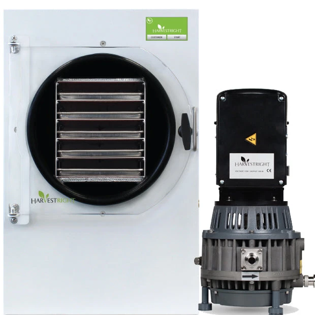 Oil free vacuum pump can be used with any size Harvest Right freeze dryer. They are quiet, fast, and easy to use. The Harvest Right Oil Free Vacuum Pumps do not require oil changes, and come with the necessary parts to connect to your current freeze dryer.