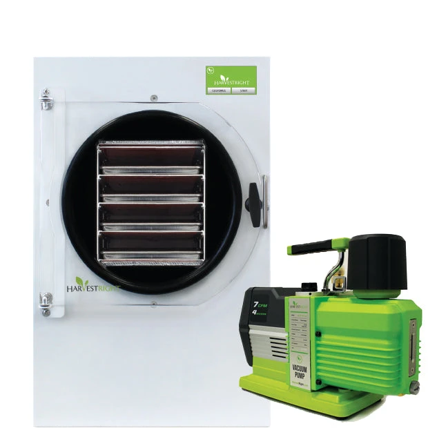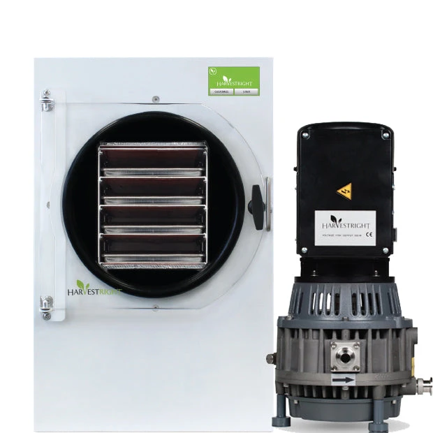 Oil free vacuum pump can be used with any size Harvest Right freeze dryer. They are quiet, fast, and easy to use. The Harvest Right Oil Free Vacuum Pumps do not require oil changes, and come with the necessary parts to connect to your current freeze dryer.