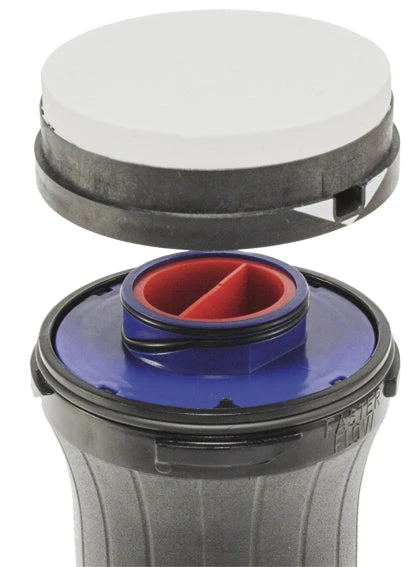 The Katadyn Vario uses ceramic as a cleanable dirt shield and glassfiber for microbiological filtration with minimal pump resistance. In “LONGER LIFE” mode, the turbid water is first prefiltered through the ceramic disk and has an output of approx. 1L/min. When operating in mode “FASTER FLOW”, the water is directed straight to the glassfiber membrane, increasing the water flow to up to 2L/min.Â
