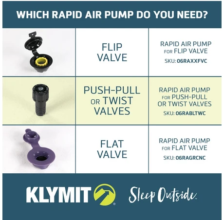 - Simple flip-valve inflation; compatible with Rapid Air Pump