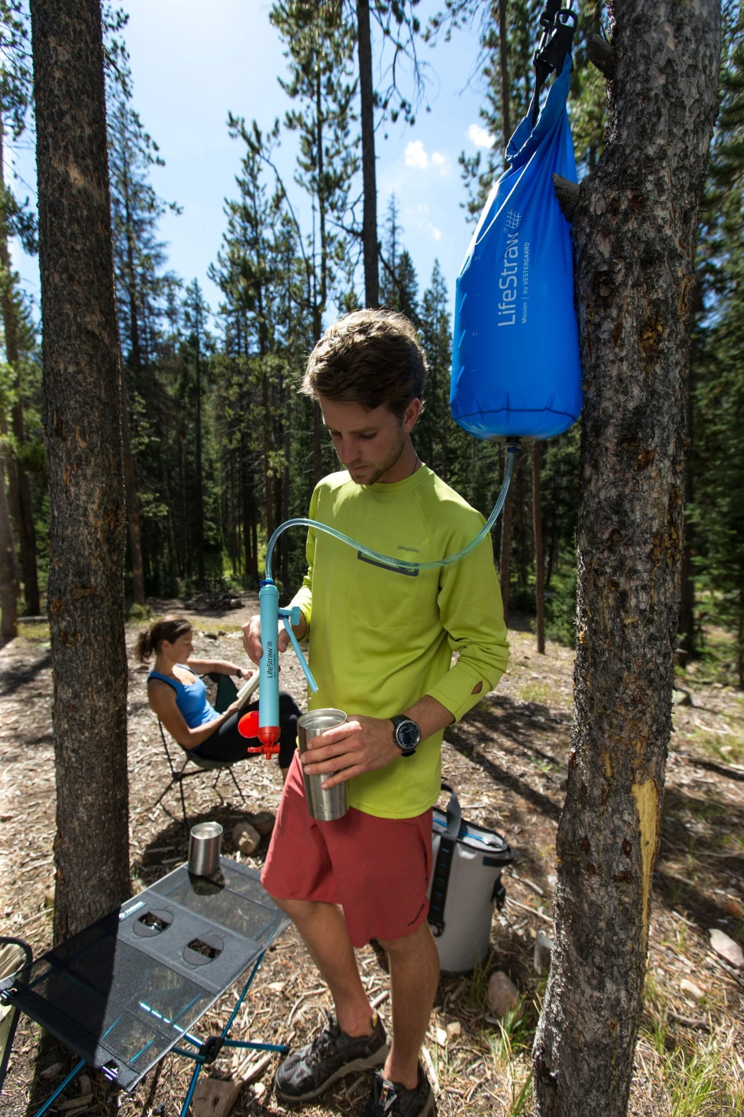 - Includes: 5- or 12-litre gravity bag with quick-connect hose, water purification cartridge and built-in backwashing system