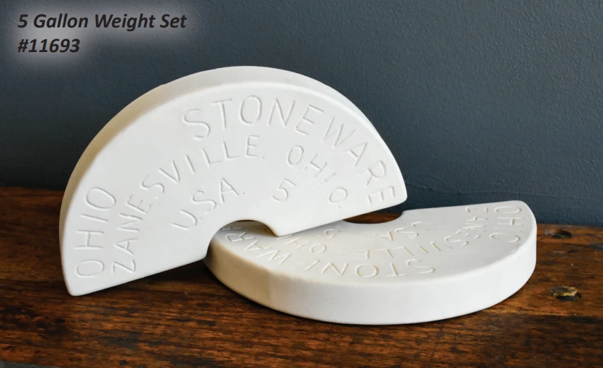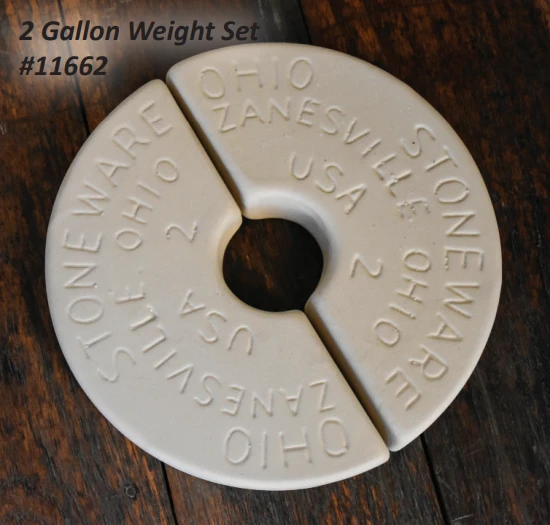 When purchasing our crocks, covers, and weights, please keep in mind that we carry six sizes of Ohio Stoneware preserving crocks, weights, and covers. Lid size and weight size should match the crock size, (I.e., 1 gallon lid pairs with the 1 gallon crock, and the 1 gallon weight set pairs with the 1 gallon crock). Available in 1, 2, 3, 4, 5, and 10 gallon sizes.Â