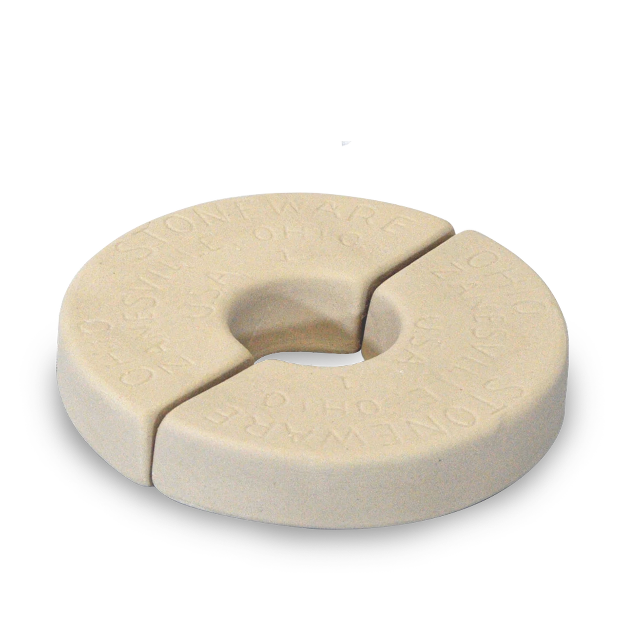 This weight set consists of two semi-circular stones designed to fit Ohio Stoneware’s Preserving Crocks. The weights are unglazed and used for food preservation. The stones rest on top of food inside of the crock to keep food in the brine for proper fermentation.Â