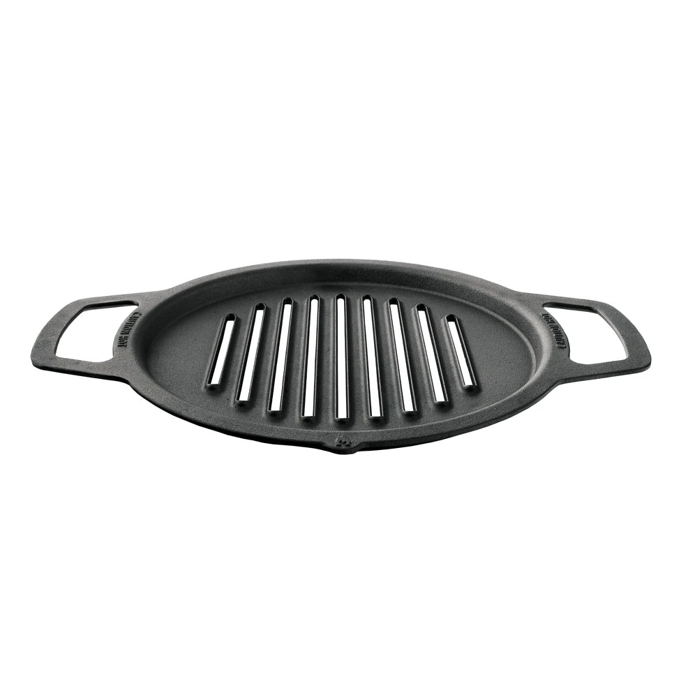 Get a clean and even sear with Cast Iron Grill’s wide grates and non-stick pre-seasoned surface. Hub lifts Cast Iron Grill to 6.5″ above your coals for ideal cooking temperatures.