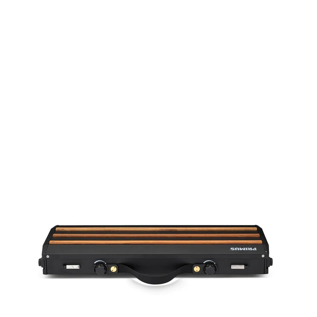The sleek die-cast aluminum body, oak laths and brass details upgrade the look of any campsite and will hold up to many years of use. The internal pot supports and drip tray are removable for easy cleaning. When storing, simply lock closed – this slim-profile stove can be stashed almost anywhere.