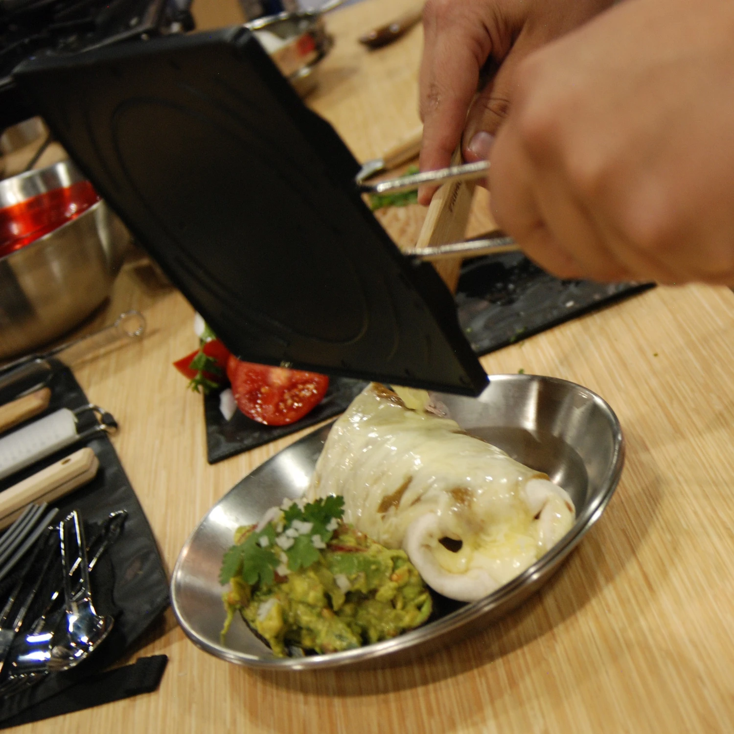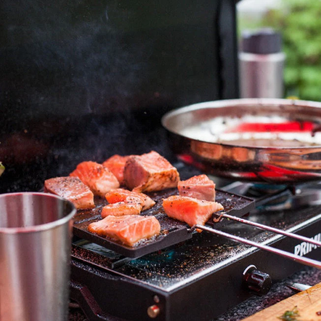 A griddle plate made from die casted aluminum for even heat distribution. The non stick surface serves convenient grilling and easy cleaning. Designed to drain fat from the food to give that grilled surface. Fits Tupike stove and most other two burner stoves. Â