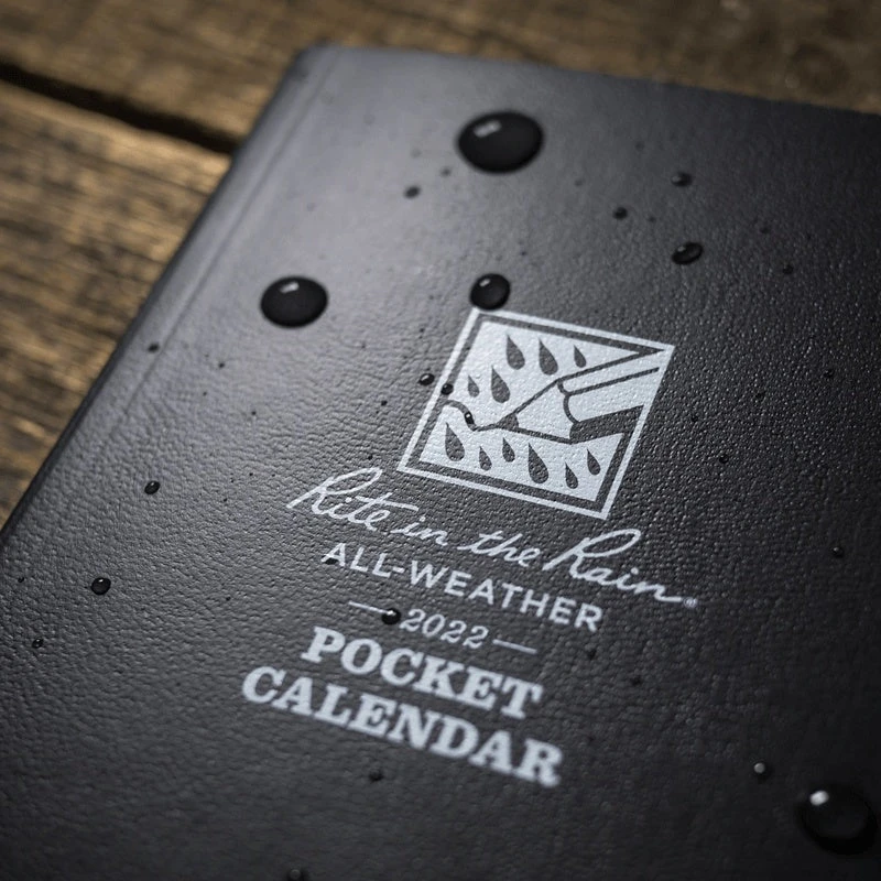 The Rite in the Rain All-Weather 2022 Pocket Calendar is the pocket planner that will actually survive the year – even through weather, laundry cycles, sweat, and stains. Our patented weatherproof paper protects your notes and appointments from Mother Nature. Each spread features a weekly planning page at left and a dot grid note page at right. An Important Dates page at the back of the book helps you remember birthdays and holidays. It’s simple, it’s durable, it’s perfect for pocket carry. It’s the indispensable Pocket Calendar by Rite in the Rain.