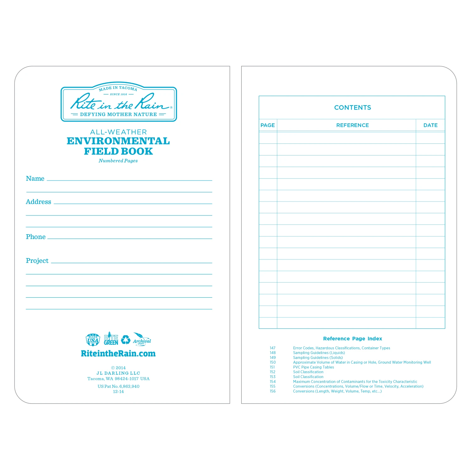 Used for field work around the world, our hard-cover books are made to endure the onslaught of the elements as well as the slow, insidious passage of time. The durable coated fabric cover protects your field notes from impact and weather. Rite in the Rain weather-resistant, archival-grade paper holds up through exposure to moisture and a lifetime in storage. No matter what you put your notes through and no matter when you go back to read them, what is written on Rite in the Rain will remain legible.