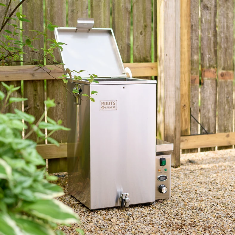 Scalding is the secret to plucking a bird, loosening the quills so the feathers come out easily. This scalder has a 13-gallon tub that holds 1-2 chickens at a time. Built to last, it’s made from double-walled stainless steel with an easy-to-read digital display and large spigot for quick clean-up. May also be used to shrink-wrap birds after plucking. Indicator lights up when the desired temperature is reached. Includes detailed instructions for a variety of game and domestic birds.