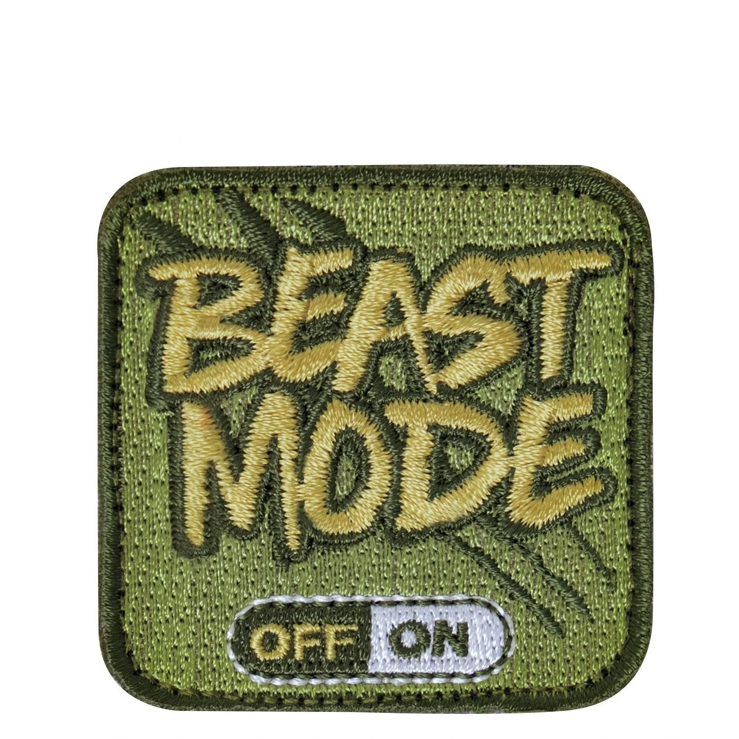 - Beast Mode Patch features “Beast Mode” yellow lettering, a dark green and white on / off switch, and a light and dark green background with claw marks