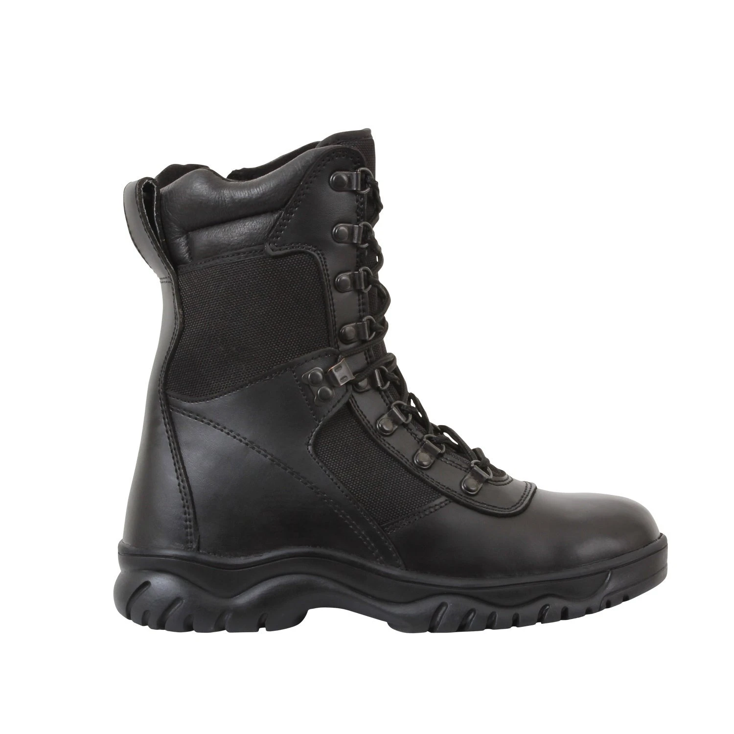 - Side Zipper Closure With A Hook And Loop Tab Allows You To Save Time By Easily Putting On/Taking Off Your SWAT Boot Without Having To Tie / Untie Your Laces