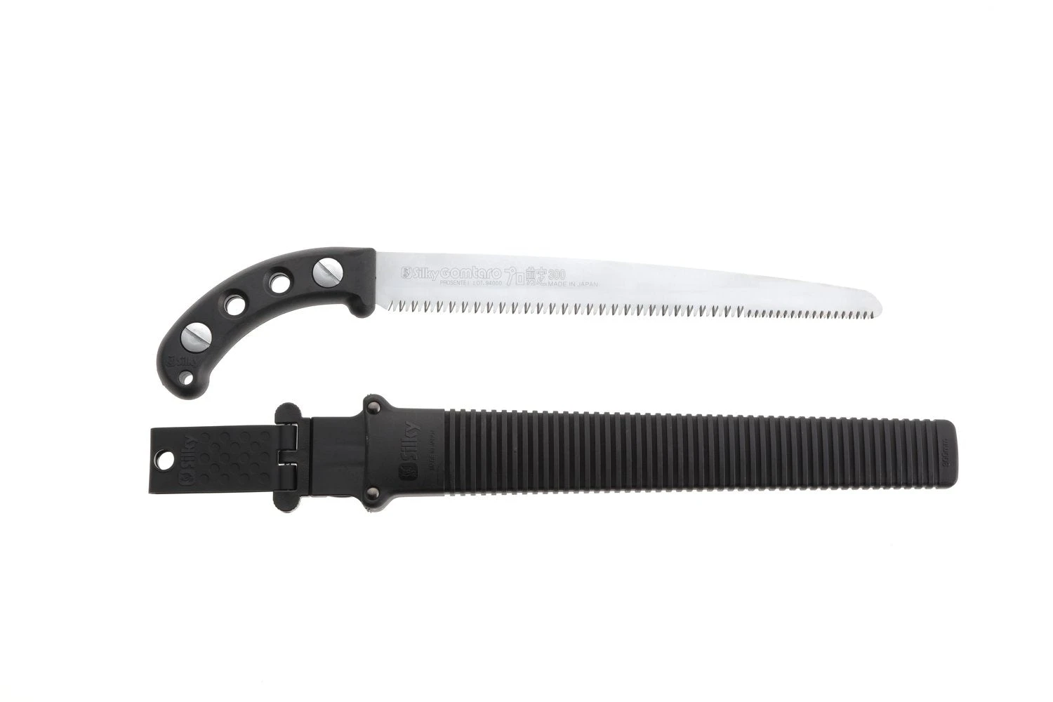 Smaller 12 tpi at the toe of the blade allow for quick fine pruning of suckers or small Branches while larger (7 tpi) teeth tackle the bigger stuff. SILKY uses rust-resistant, hard Chrome plated SK4 Japanese steel for its blades: tough and durable tools. Four cutting angles and electronically hardened teeth make this a well balanced and professional tool. 30 centimeters blade length. 12 inch long blade. The king of the orchard. Made in Japan. Comes with a yellow sheath.