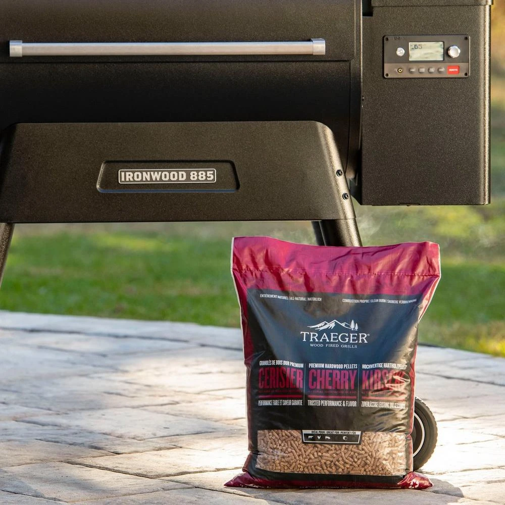 Only Traeger can guarantee that nothing harmful is cooking your food. With our 100% all-natural wood pellets, fuel the fire for memorable food kissed by robust wood smoke. We keep our smoke to moisture ratio consistently at 5%—the perfect spot for optimal burn. With Traeger Cherry pellets, naturally enhance Beef, Chicken, and Pork with a subtly sweet, fruity flavour.